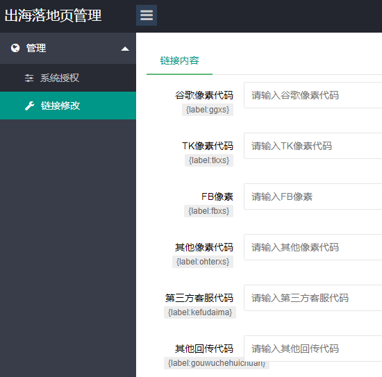 系统已经集成GG、FB、TK的像素管理及购物车回传事件,只需要填写对应的像素代码即可,系统默认添加购物车回传事件;